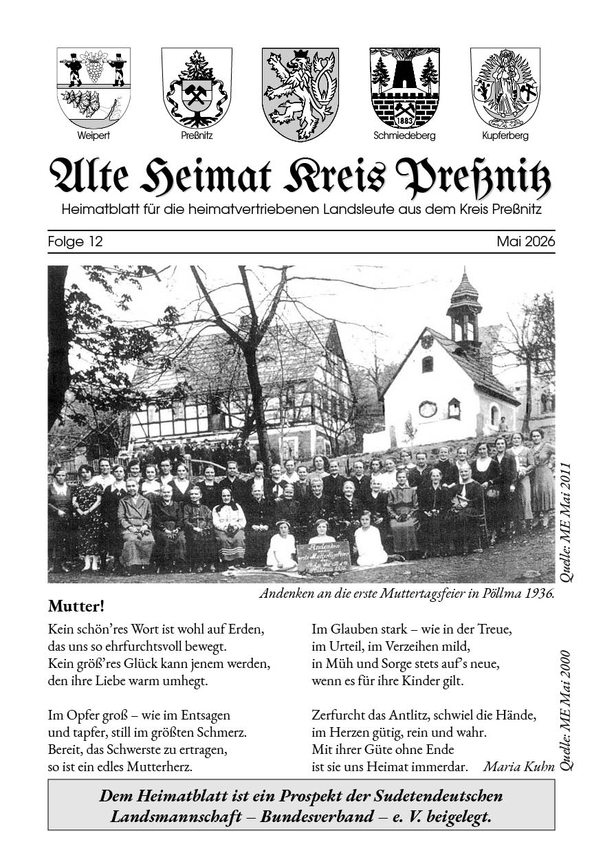 Seit Juni 2025 biete ich die Heimatzeitung „Alte Heimat Kreis Preßnitz“ in gedruckter Form interessierten Heimatfreunden als Abonnement an. Ich arbeite an diesem Projekt ehrenamtlich, es werden nur die anfallenden Kosten für Material, Druck und Versand berechnet.
